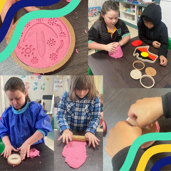 The children at Kidz Mob Childers enjoyed making Native Scented (Strawberry Gum) playdough and experimenting with our new Aboriginal Symbols and map of Australia playdough cutters from @ochredough. They made beautiful prints with the imprint part of the cutting set. We discussed what the Aboriginal symbols on the imprints might represent and talked about how we can tell stories with the Aboriginal symbols. We then looked at our new Aboriginal symbols chart and our Aboriginal symbols on our Reconciliation display and identified the following symbols: emu, kangaroo, campsite, and running water that we were kindly gifted by Riley Callie Resources.